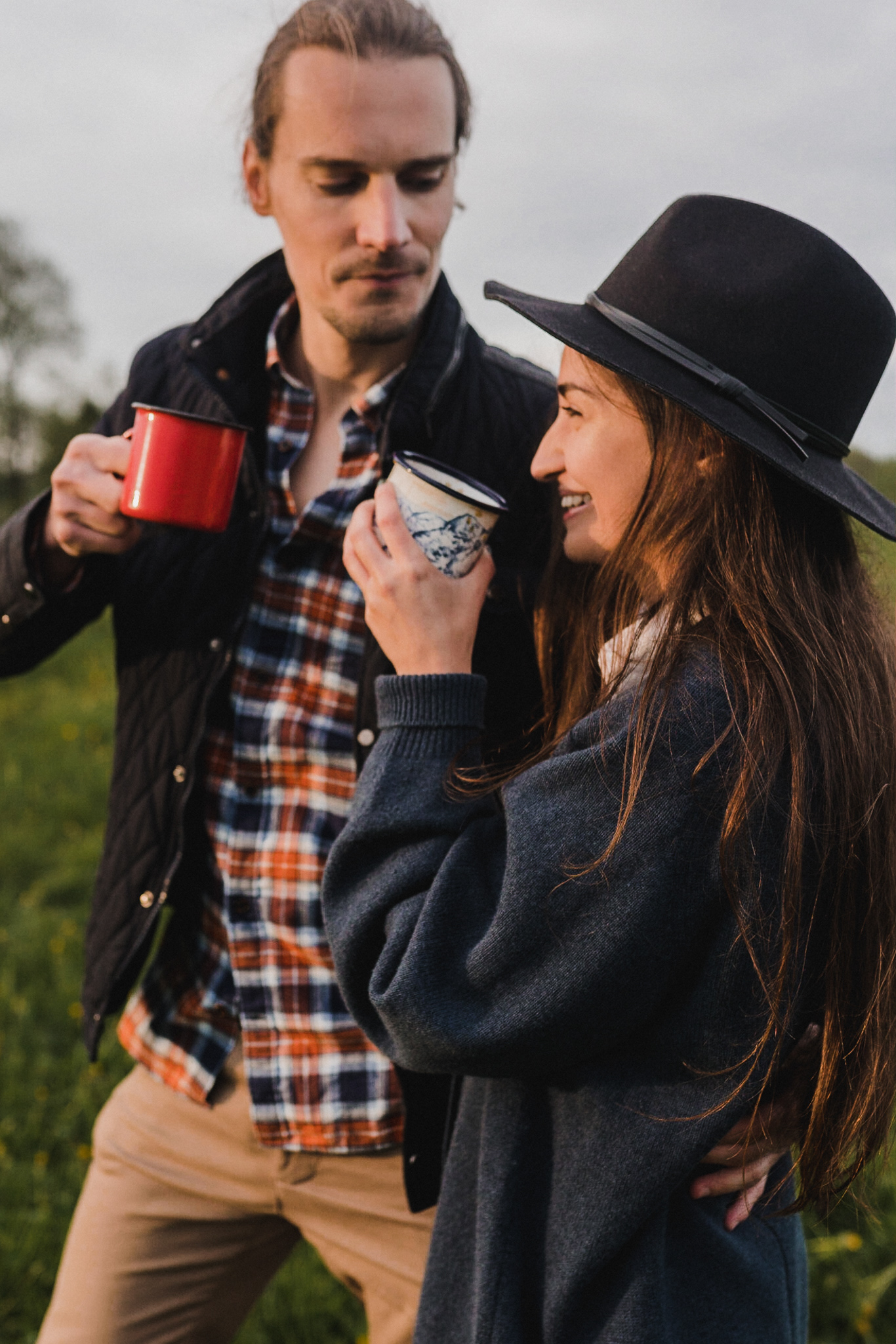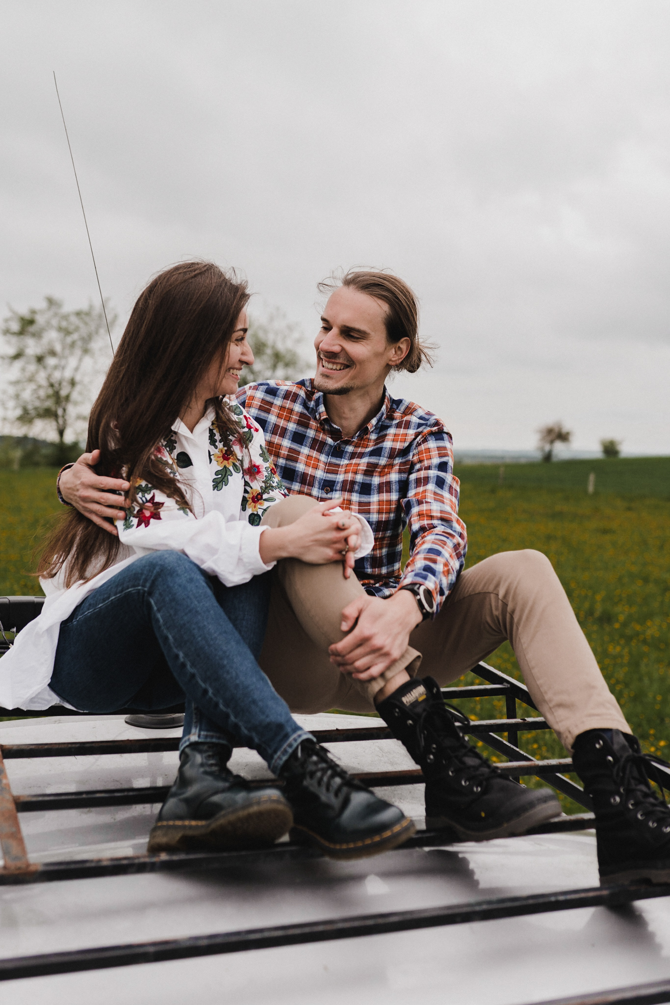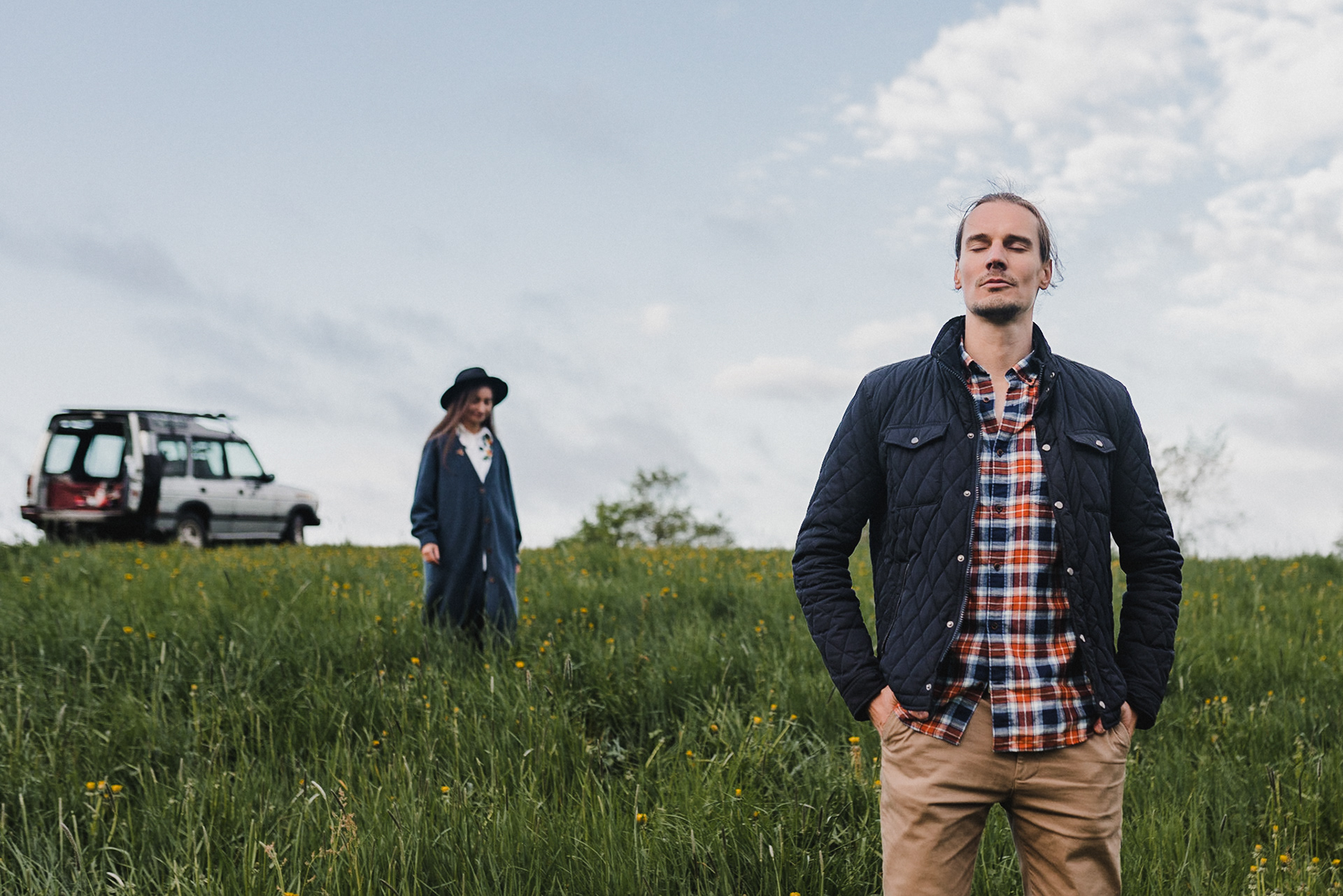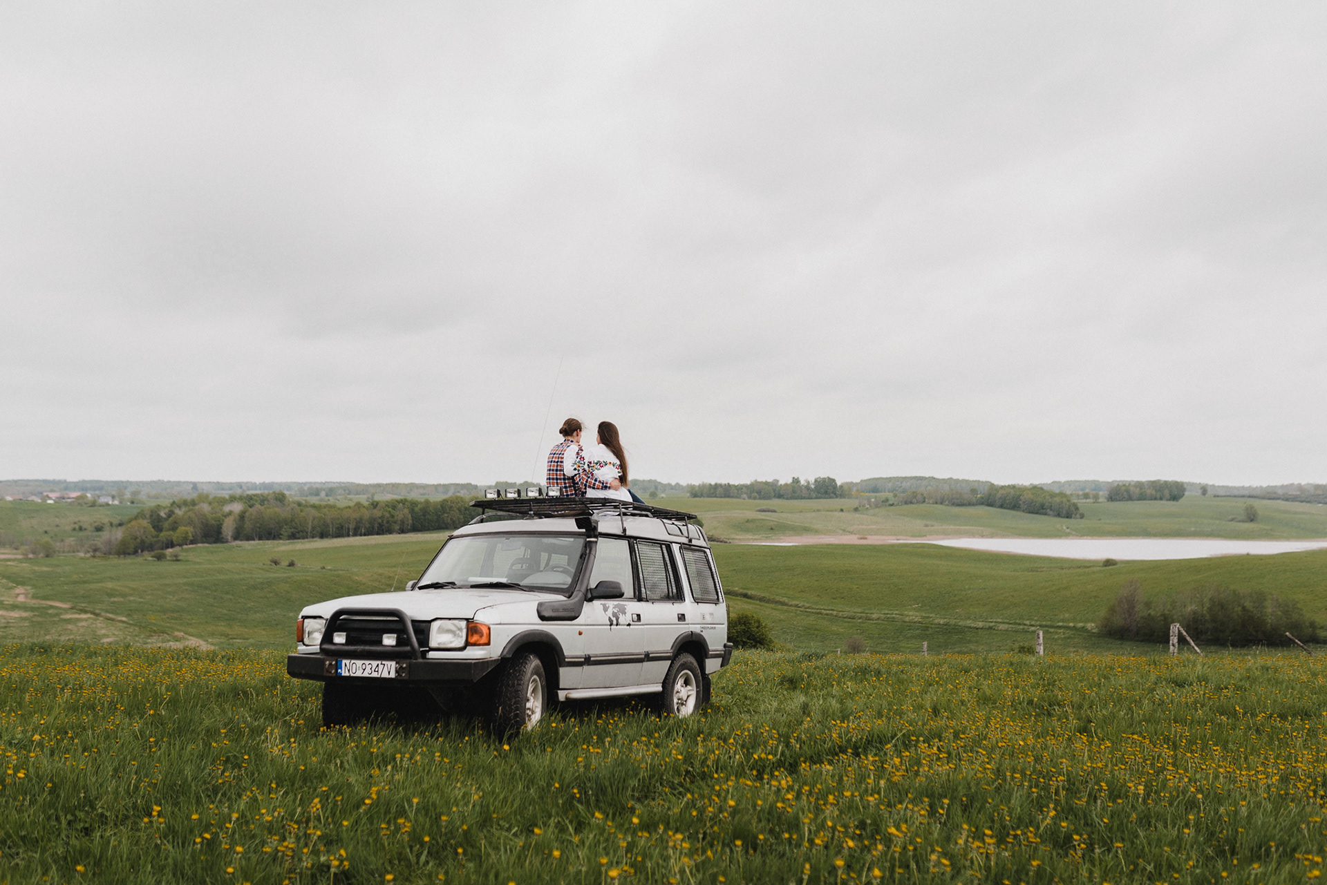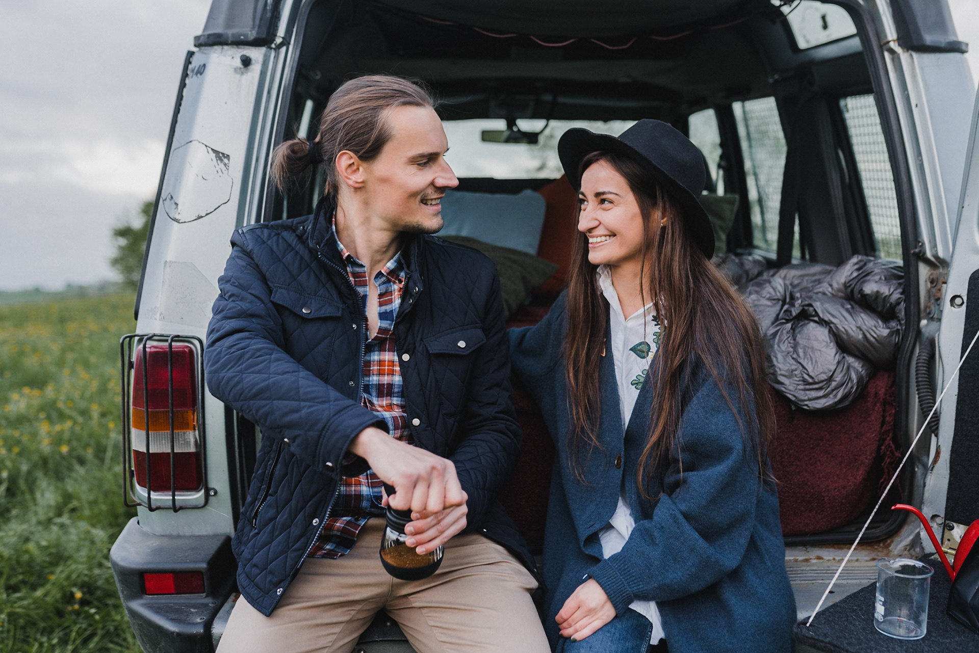 Sesję zaplanowaliśmy na sobotę, 14 maja. Zapowiadał się ładny wschód słońca, więc umówiliśmy się o 4.30 na miejscu zdjęć. Sprawdzając dzień wcześniej pogodę, nie zapowiadało się... tak spore zachmurzenie :D Słońce zawitało raptem na 15 minut - ale jakie to było 15 minut! Ciepłe, dobre. Z resztą cała sesja taka była - pełna ciepła, dobra, uśmiechów, przytulania, pocałunków w czoło i czułych spojrzeń. No i oczywiście był rytuał parzenia kawy, camperowy Landrover i piękne widoki.