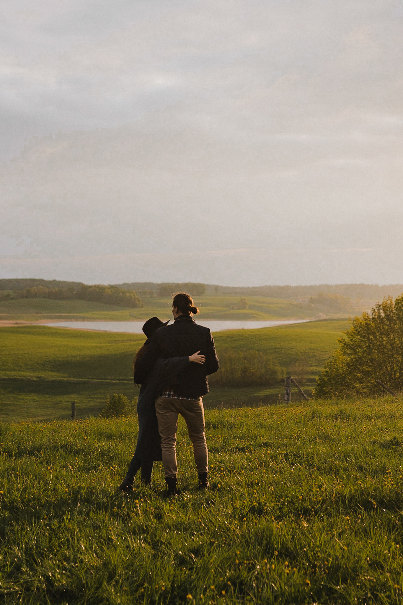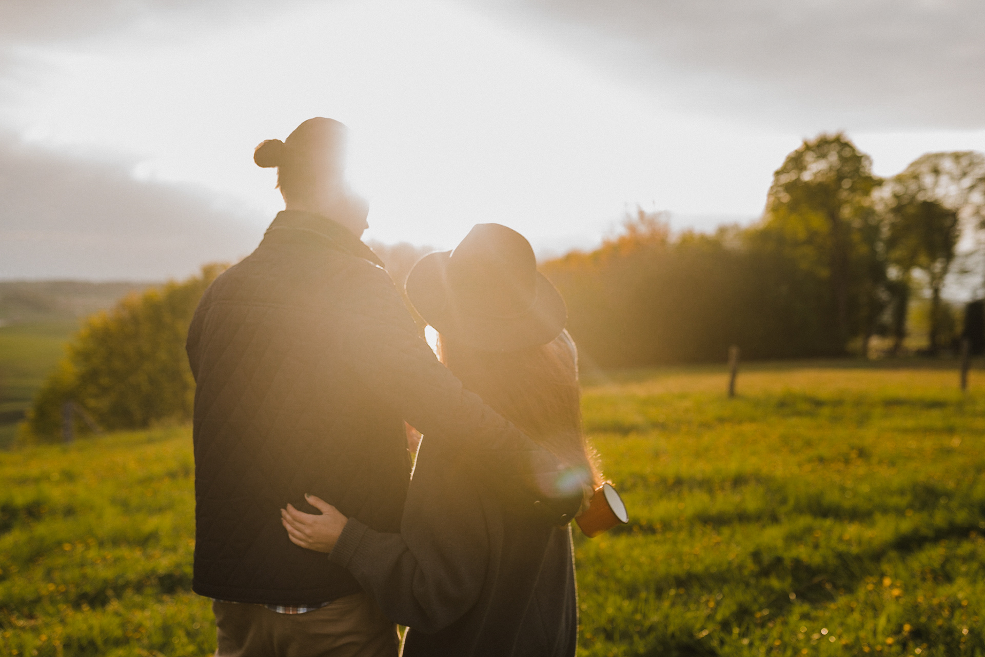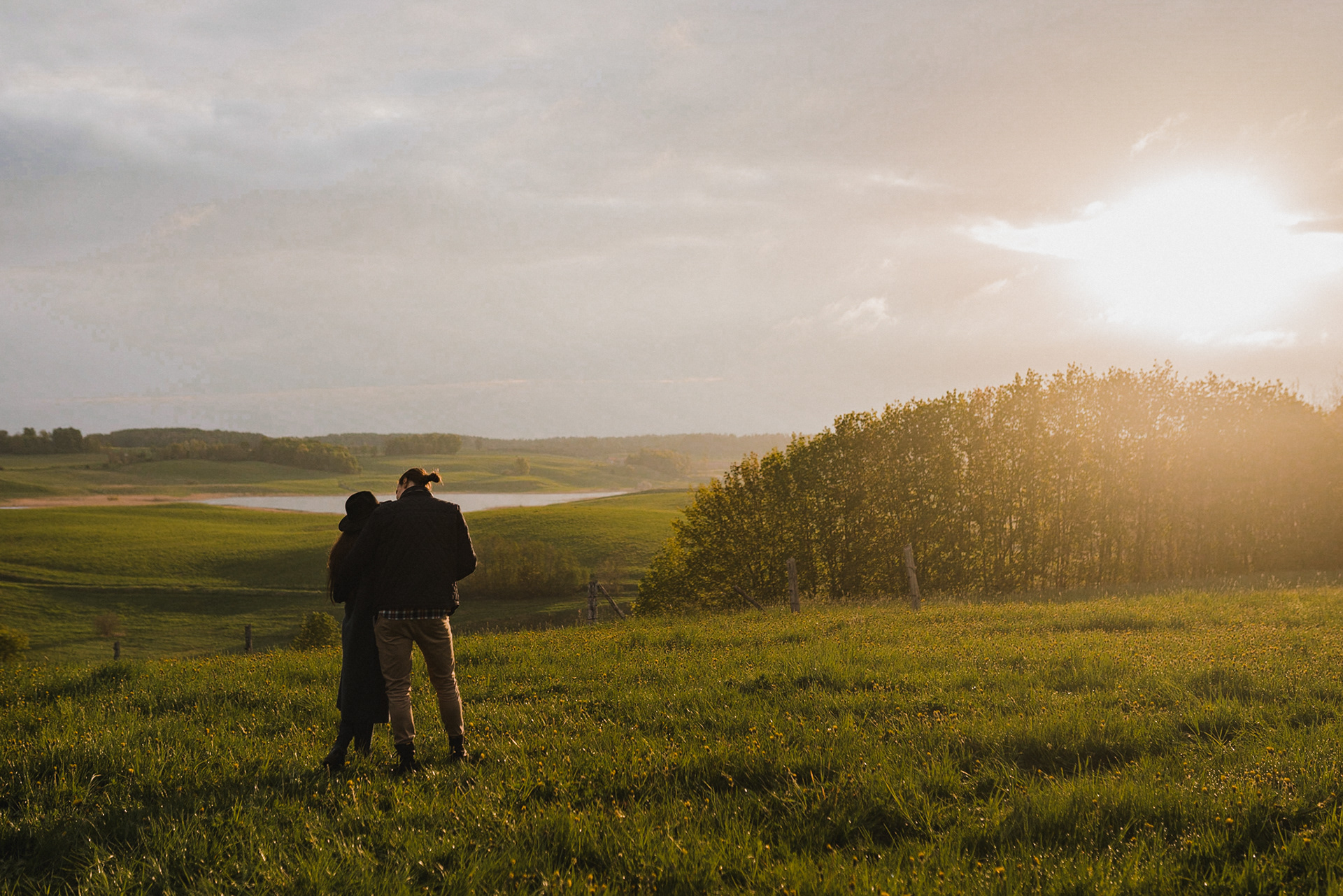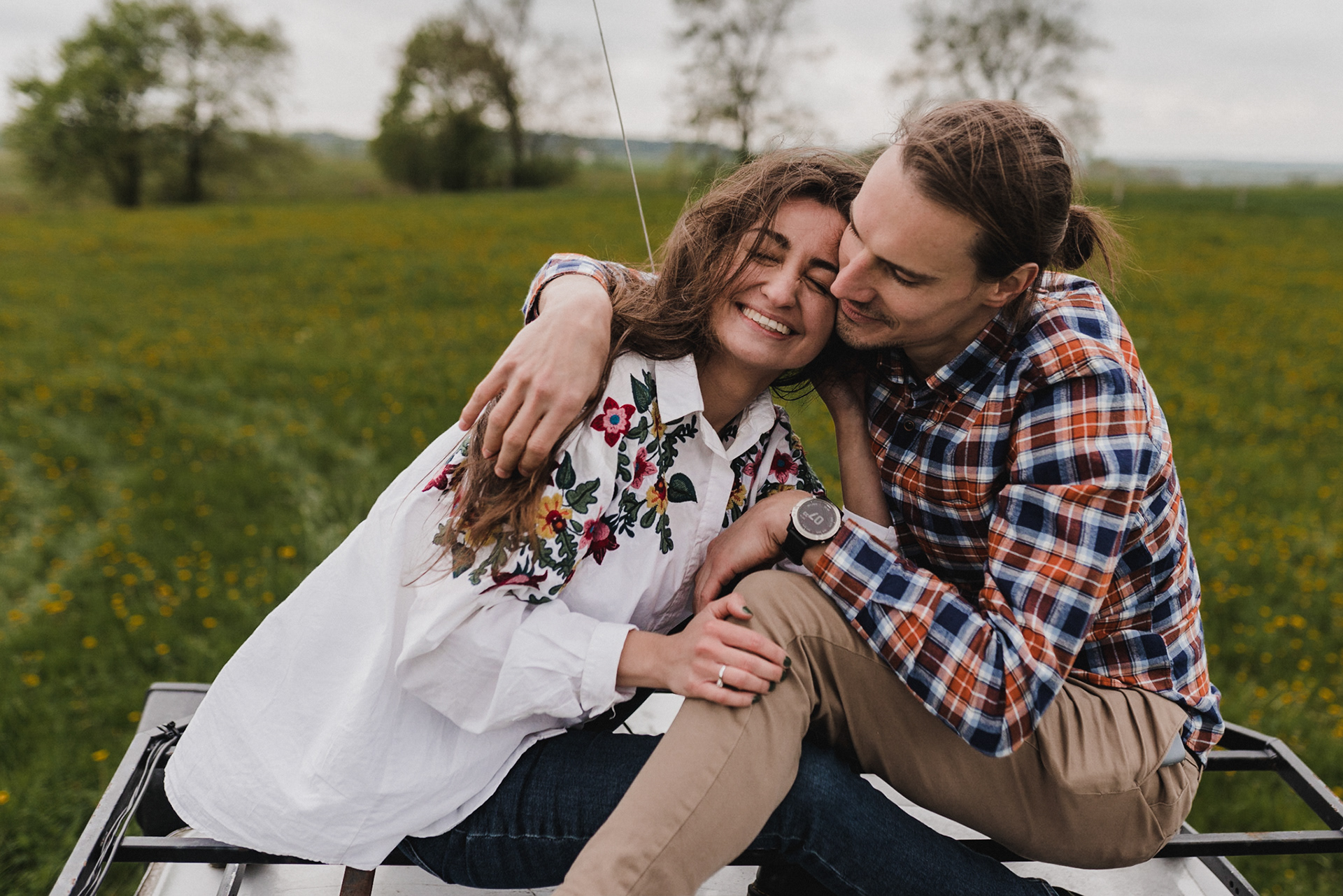 Sesję zaplanowaliśmy na sobotę, 14 maja. Zapowiadał się ładny wschód słońca, więc umówiliśmy się o 4.30 na miejscu zdjęć. Sprawdzając dzień wcześniej pogodę, nie zapowiadało się... tak spore zachmurzenie :D Słońce zawitało raptem na 15 minut - ale jakie to było 15 minut! Ciepłe, dobre. Z resztą cała sesja taka była - pełna ciepła, dobra, uśmiechów, przytulania, pocałunków w czoło i czułych spojrzeń. No i oczywiście był rytuał parzenia kawy, camperowy Landrover i piękne widoki.