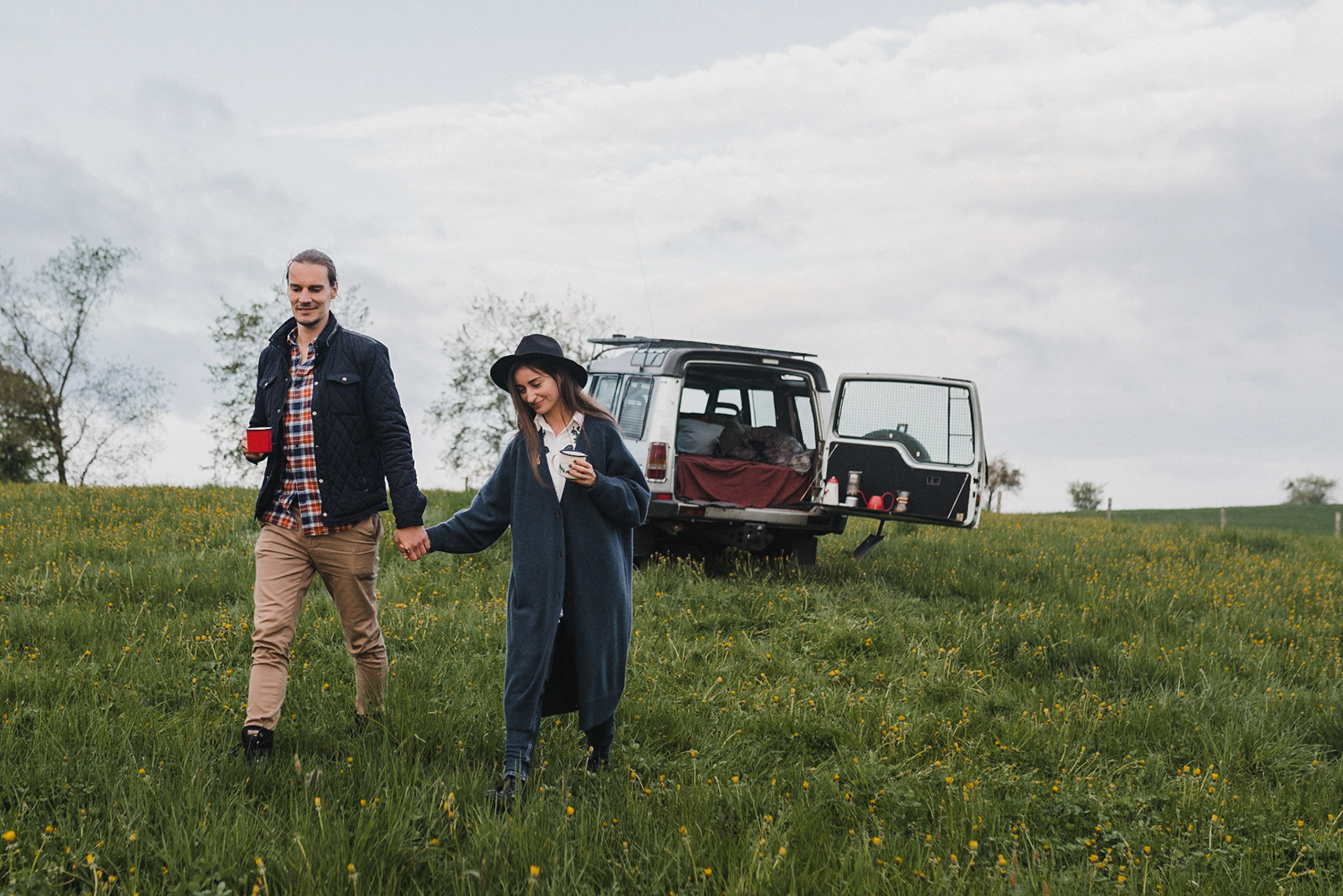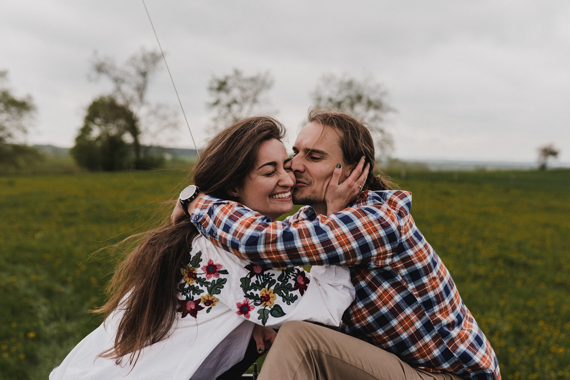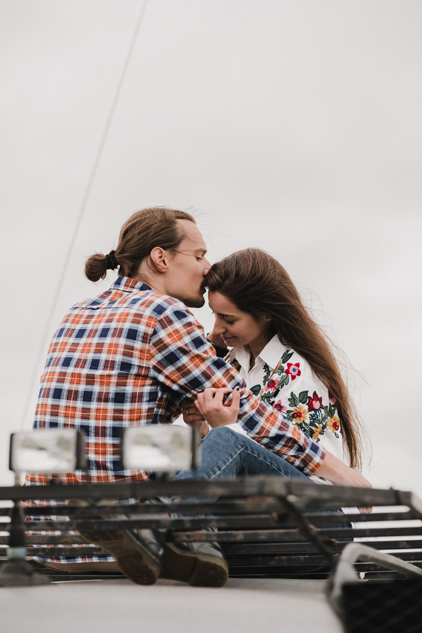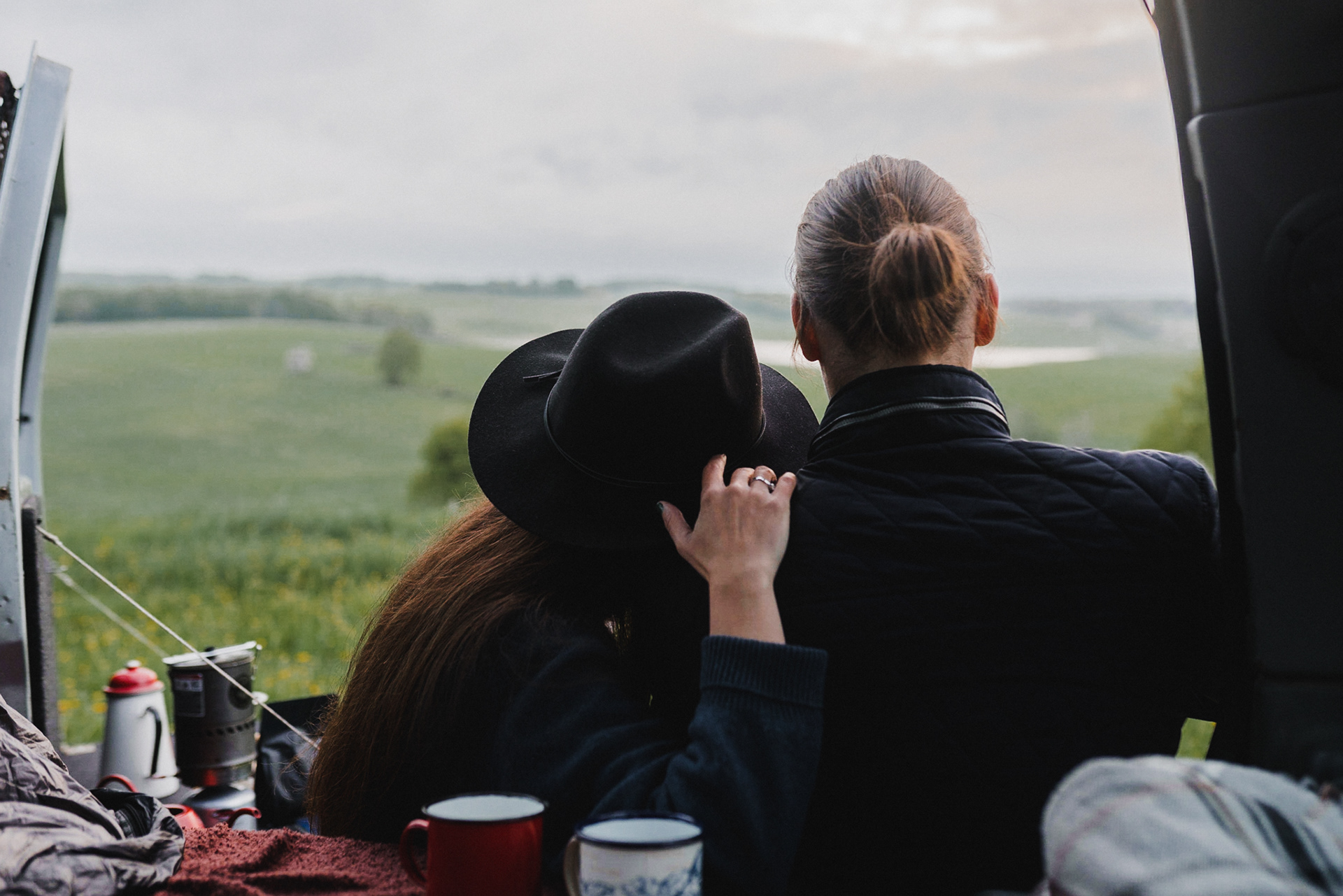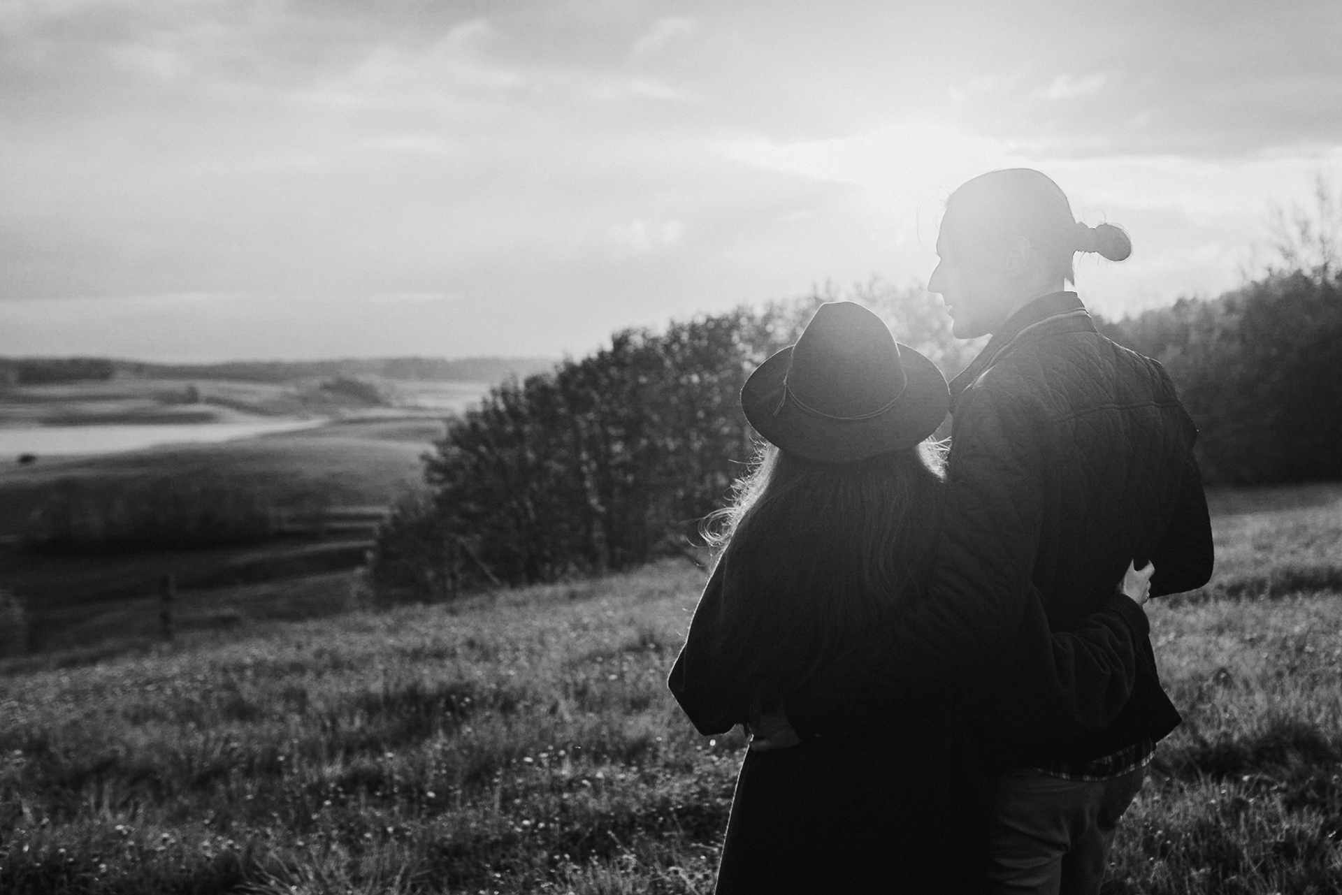 Sesję zaplanowaliśmy na sobotę, 14 maja. Zapowiadał się ładny wschód słońca, więc umówiliśmy się o 4.30 na miejscu zdjęć. Sprawdzając dzień wcześniej pogodę, nie zapowiadało się... tak spore zachmurzenie :D Słońce zawitało raptem na 15 minut - ale jakie to było 15 minut! Ciepłe, dobre. Z resztą cała sesja taka była - pełna ciepła, dobra, uśmiechów, przytulania, pocałunków w czoło i czułych spojrzeń. No i oczywiście był rytuał parzenia kawy, camperowy Landrover i piękne widoki.