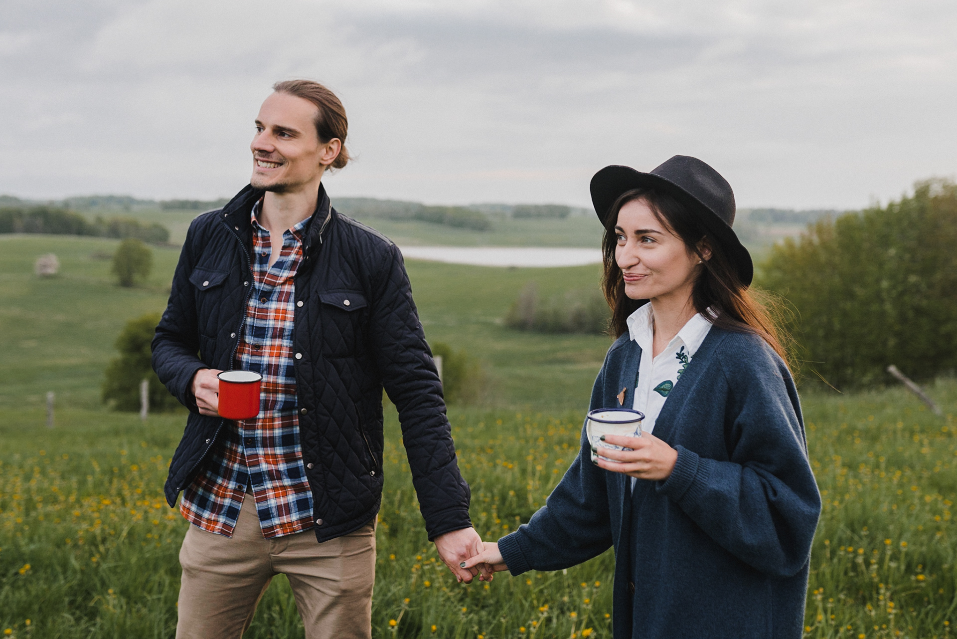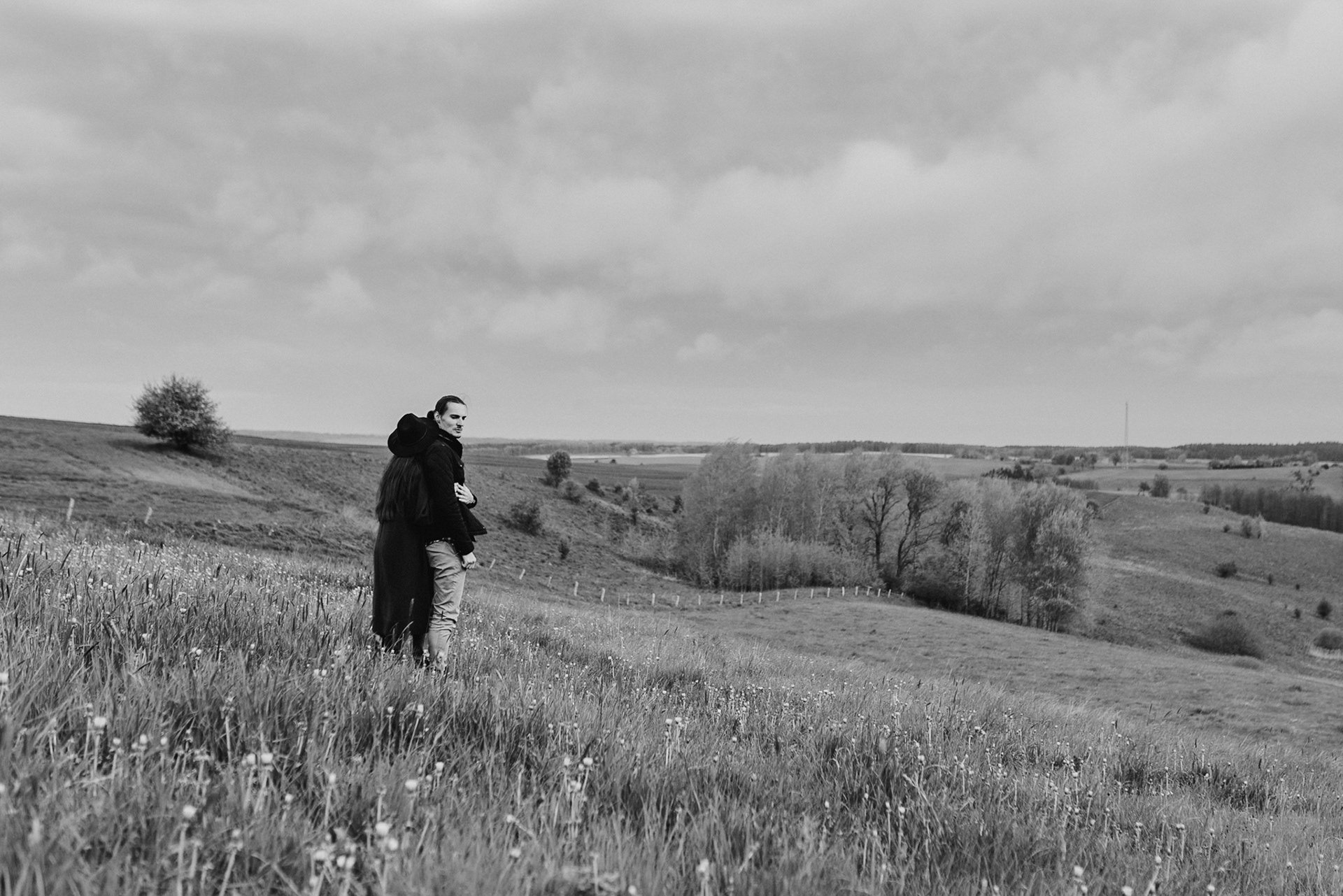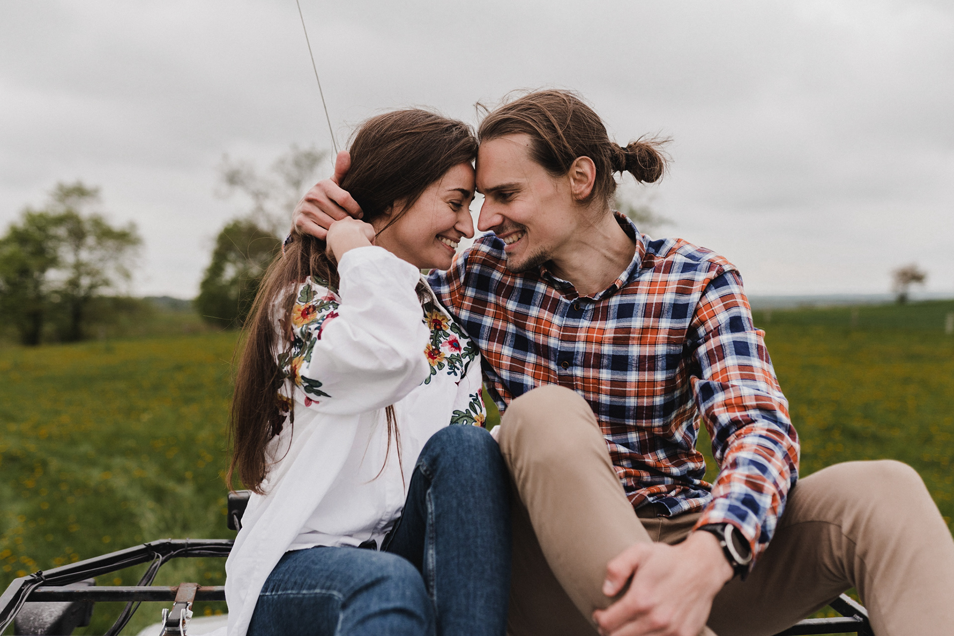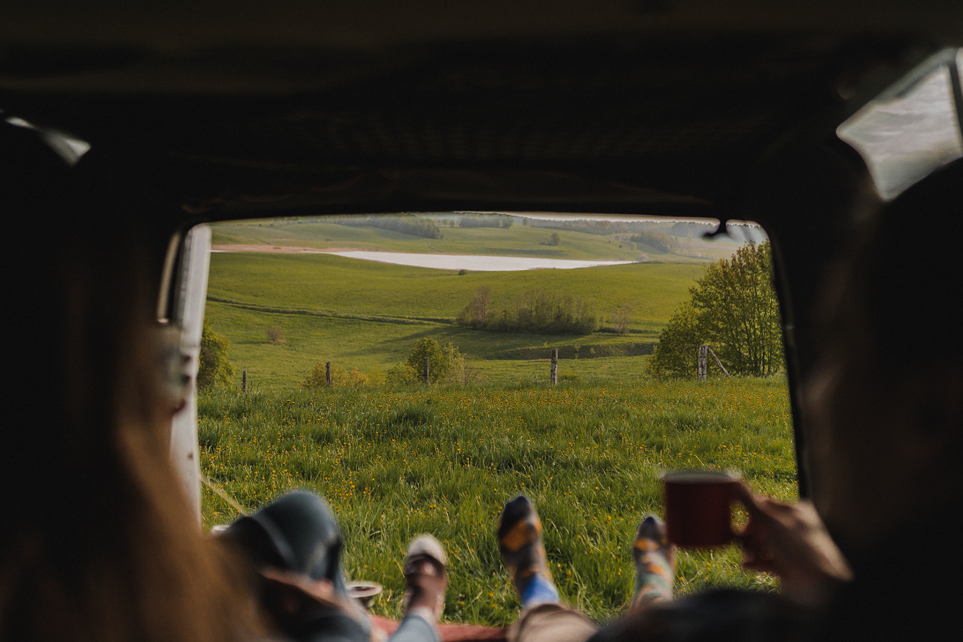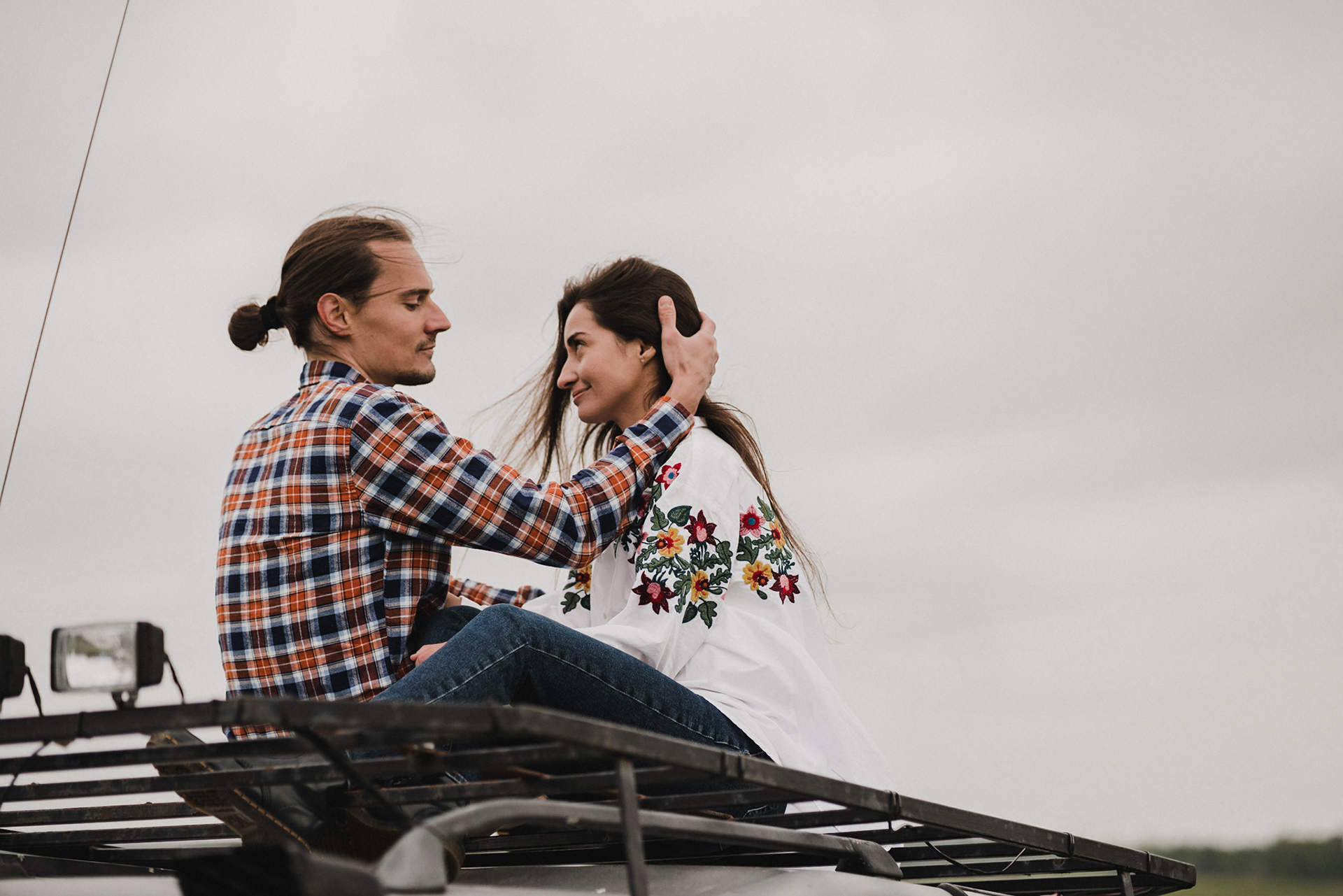 Sesję zaplanowaliśmy na sobotę, 14 maja. Zapowiadał się ładny wschód słońca, więc umówiliśmy się o 4.30 na miejscu zdjęć. Sprawdzając dzień wcześniej pogodę, nie zapowiadało się... tak spore zachmurzenie :D Słońce zawitało raptem na 15 minut - ale jakie to było 15 minut! Ciepłe, dobre. Z resztą cała sesja taka była - pełna ciepła, dobra, uśmiechów, przytulania, pocałunków w czoło i czułych spojrzeń. No i oczywiście był rytuał parzenia kawy, camperowy Landrover i piękne widoki.