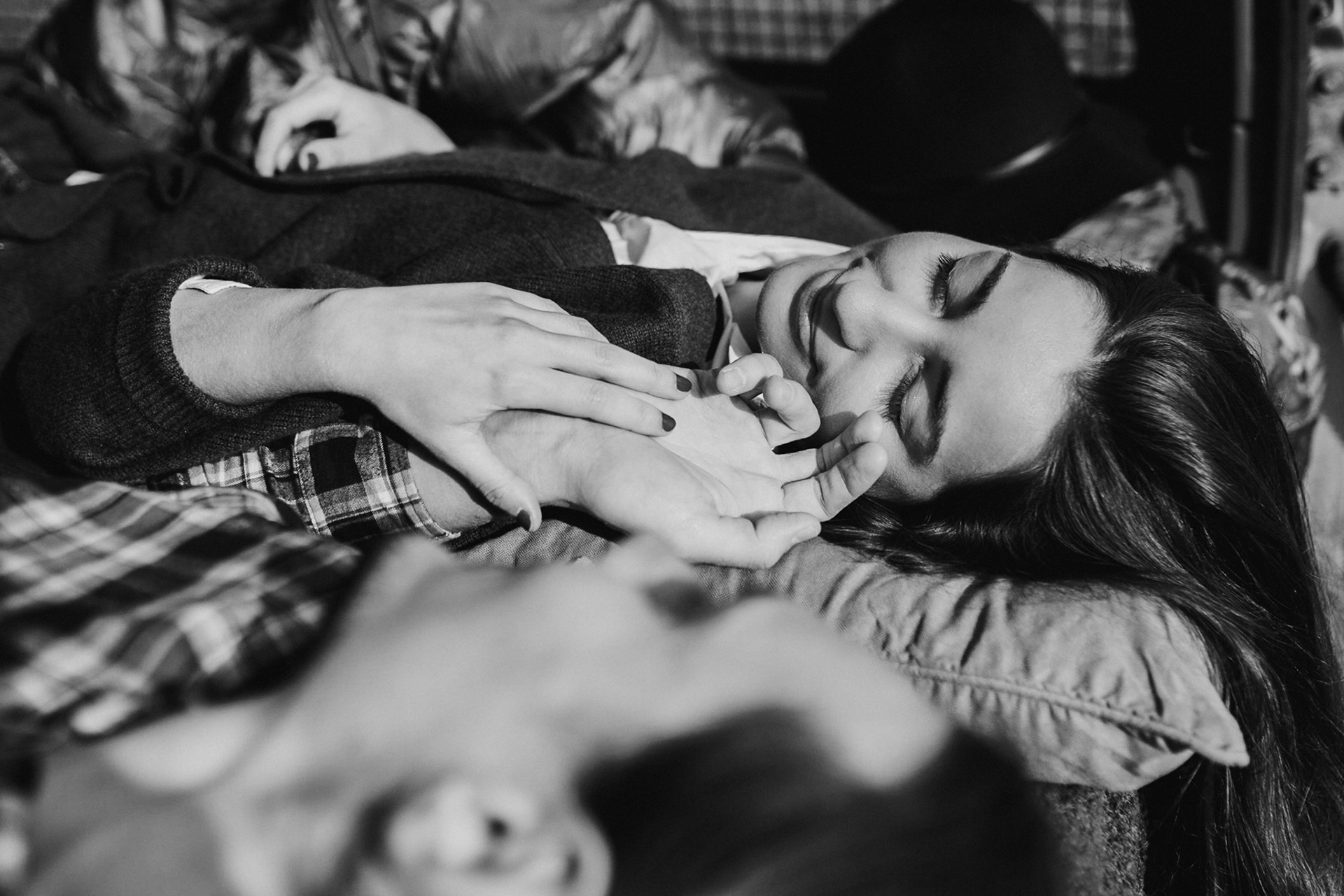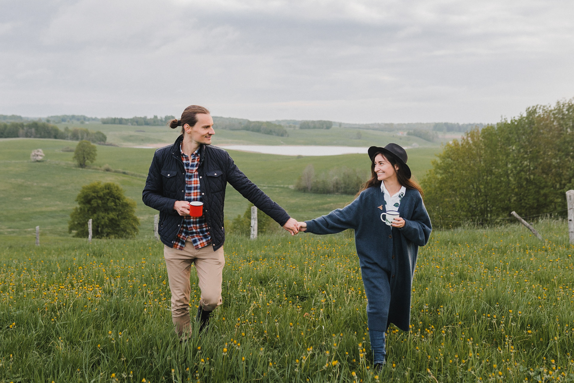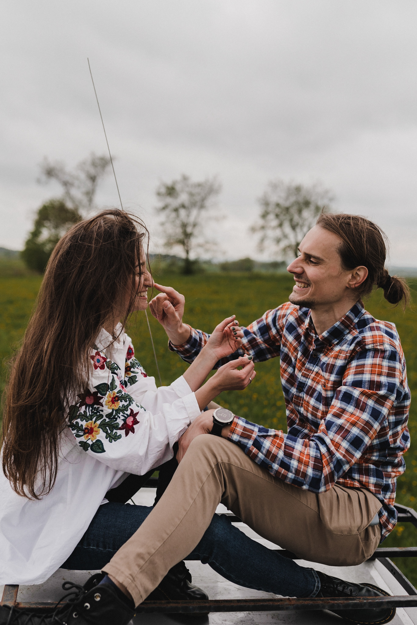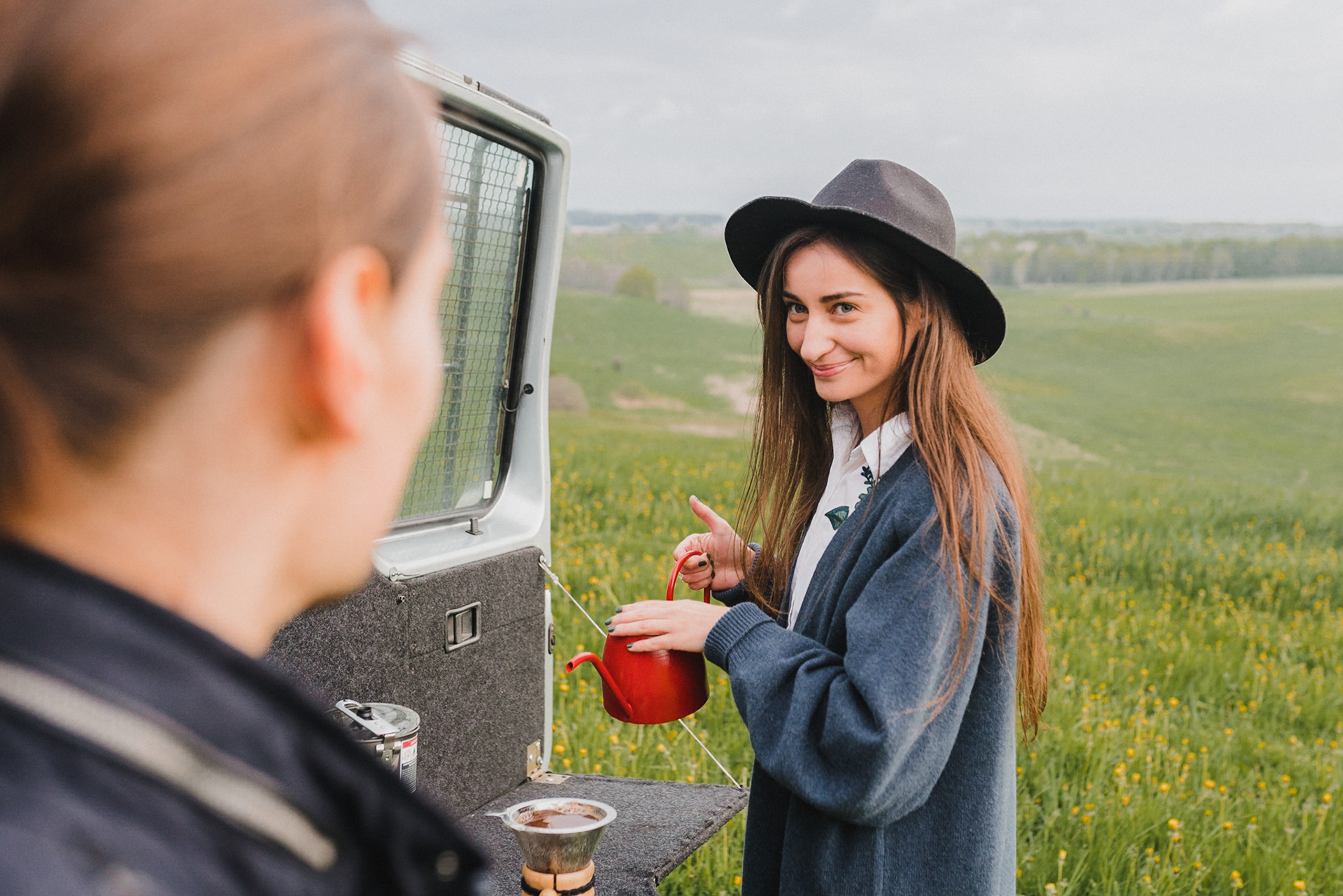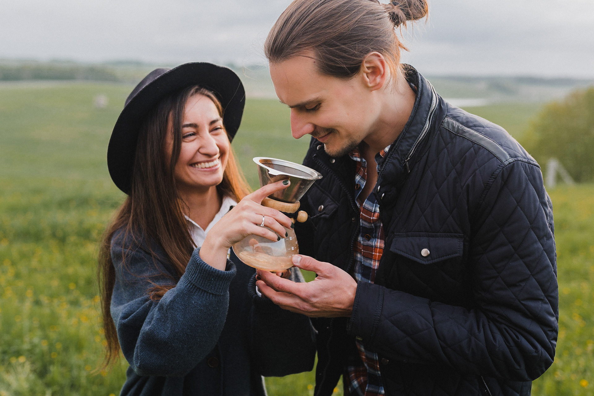 Sesję zaplanowaliśmy na sobotę, 14 maja. Zapowiadał się ładny wschód słońca, więc umówiliśmy się o 4.30 na miejscu zdjęć. Sprawdzając dzień wcześniej pogodę, nie zapowiadało się... tak spore zachmurzenie :D Słońce zawitało raptem na 15 minut - ale jakie to było 15 minut! Ciepłe, dobre. Z resztą cała sesja taka była - pełna ciepła, dobra, uśmiechów, przytulania, pocałunków w czoło i czułych spojrzeń. No i oczywiście był rytuał parzenia kawy, camperowy Landrover i piękne widoki.