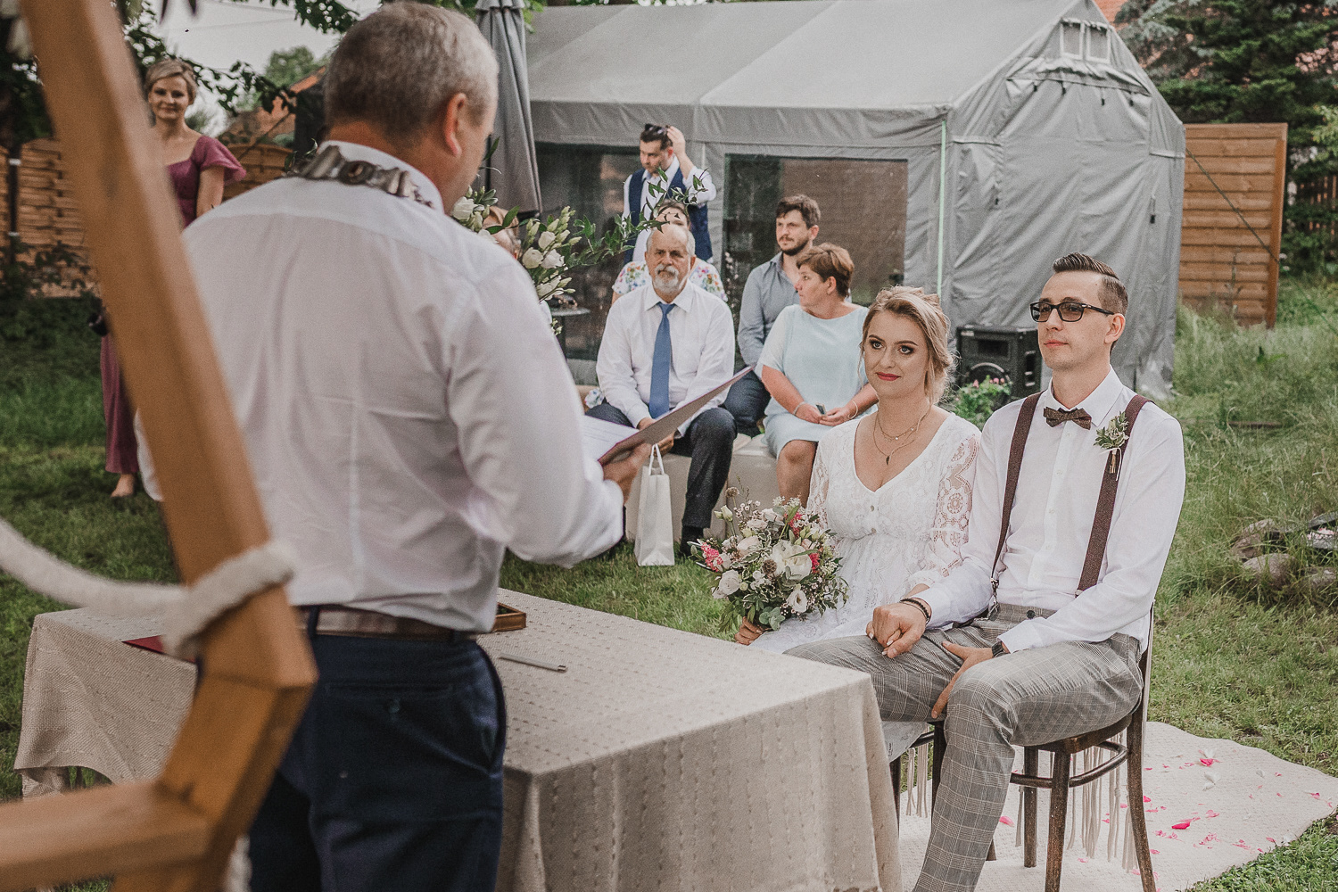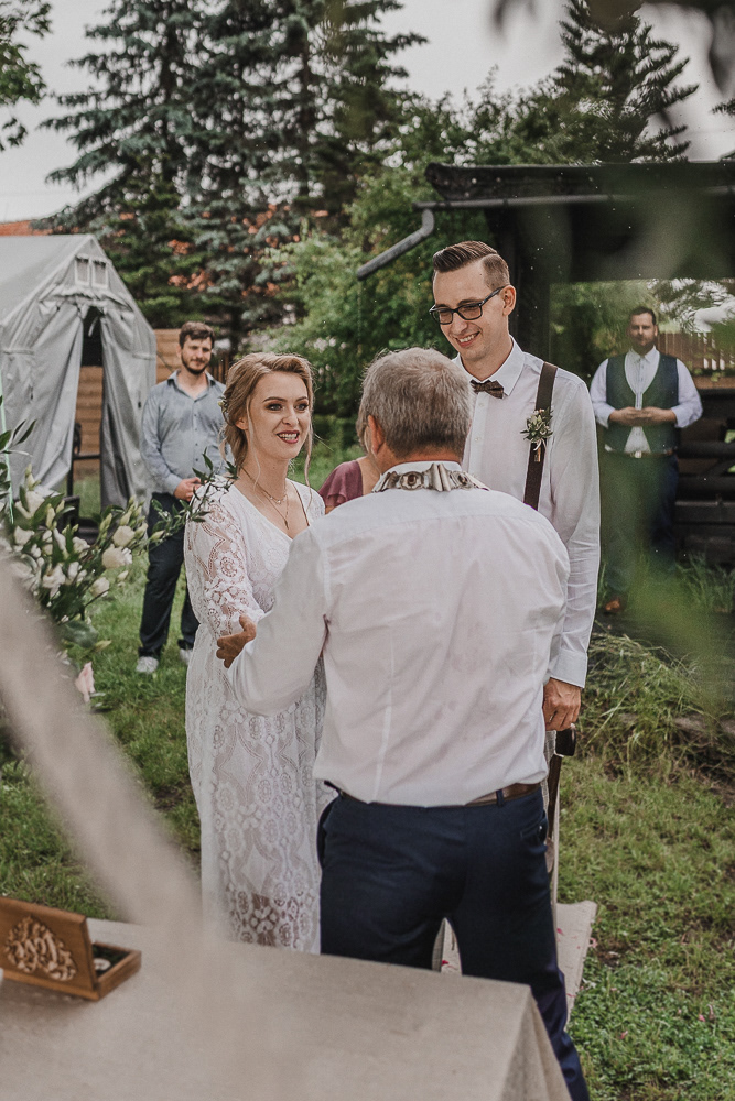 Aga i Filip pobrali się w czerwcu. W dniu, gdy zaczynało się ich "długo i szczęśliwie" czerwcowa pogoda pokazała wszystkie swoje oblicza. Był i skwar, i deszcz, i mżawka, i znowu upał, i burza z piorunami. Ale było też bardzo pięknie, rodzinnie, swobodnie i naturalnie. Sielsko i radośnie.